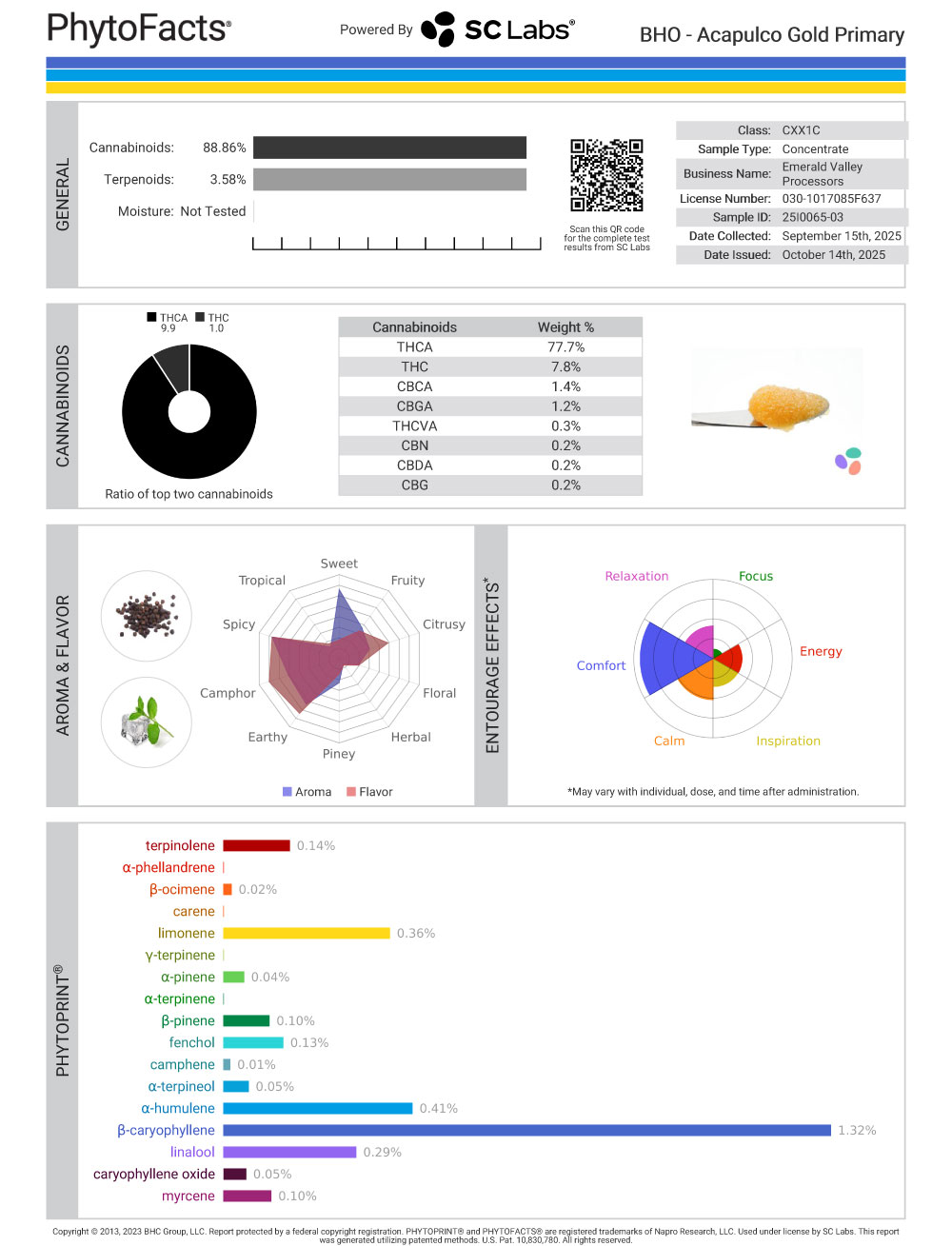 Acapulco Gold Cannabinoid and Terpene Test Results