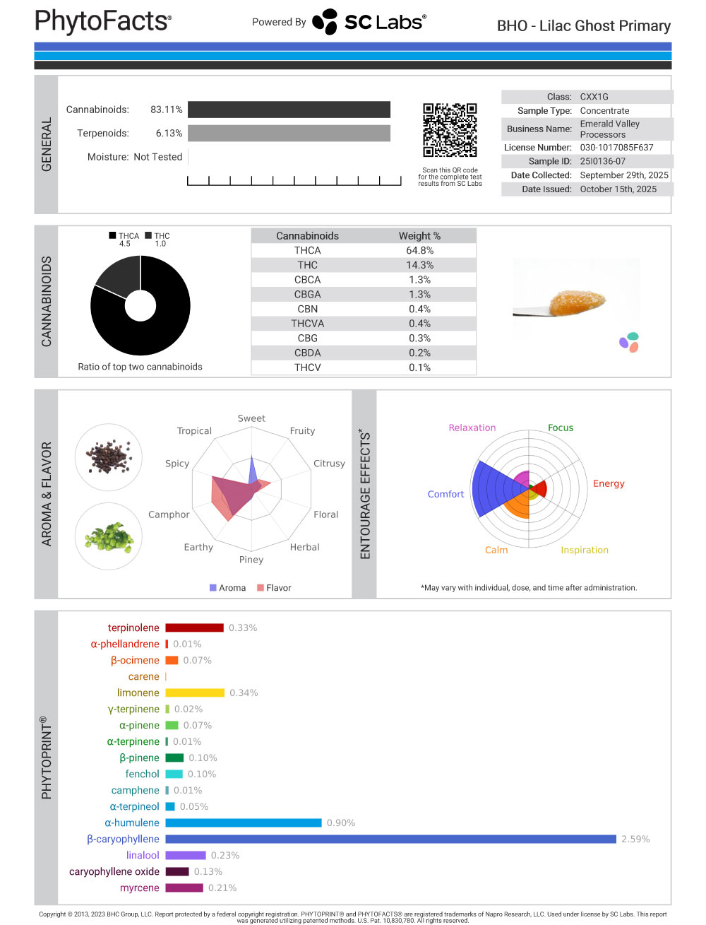 Lilac Ghost Cannabinoid and  Terpene Test Results