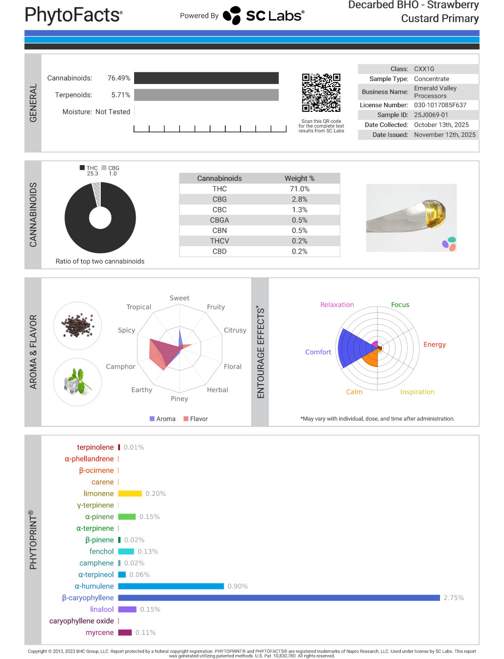 Strawberry Custard Cannabinoid and Terpene Test Results