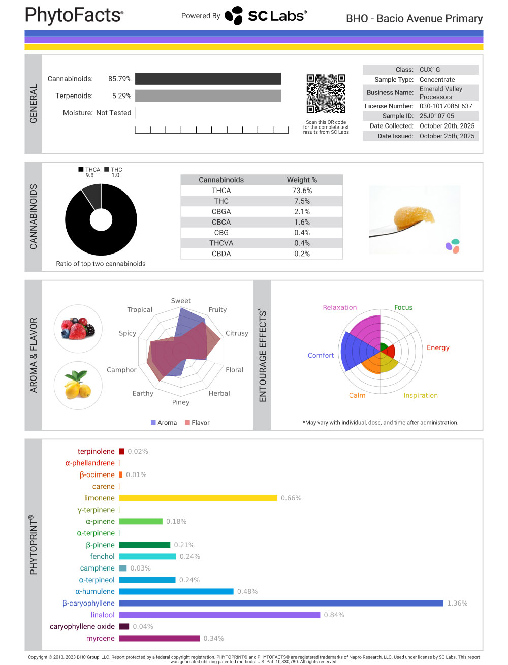 Bacio Avenue Cannabinoid and Terpene Test Results
