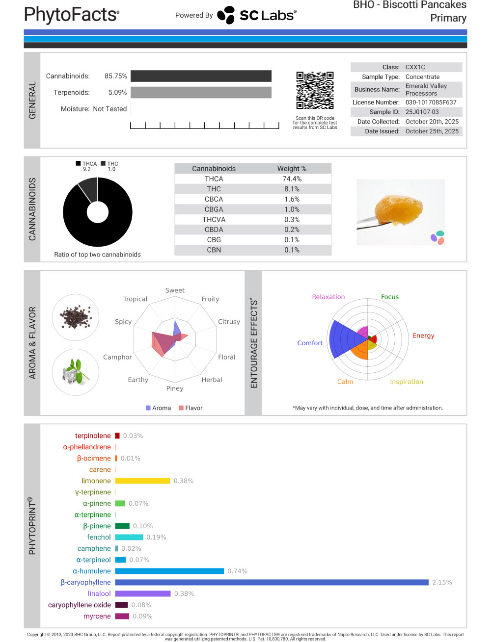 Overall, the Biscotti Pancakes blend by The Dope Depot is a good choice for anyone looking for golden dabs at silver prices. With 85% cannabinoids and 5.09% terpene content, the smell and taste is in the driver’s seat taking the cannabinoids out to the diner.