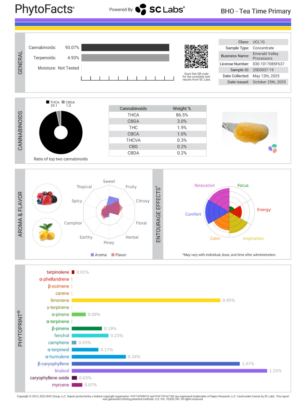 Overall, Tea Time is a great dab to have stocked, locked, loaded, and ready to go in your arsenal. With a bright happy golden hue, loaded with cannabinoids and terpenes, Tea Time turns me time into a sweet time.