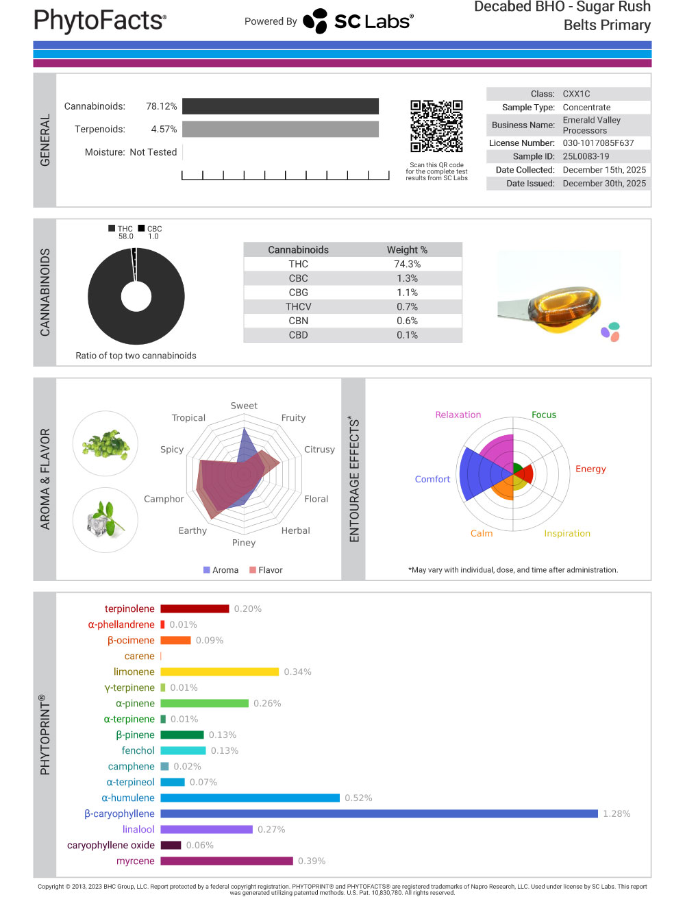 Overall, With 78% total active cannabinoids and 4.57% terpenes, Sugar Rush Belts by The Dope Depot isn’t trying to win the terp Olympics, but it doesn’t need to.