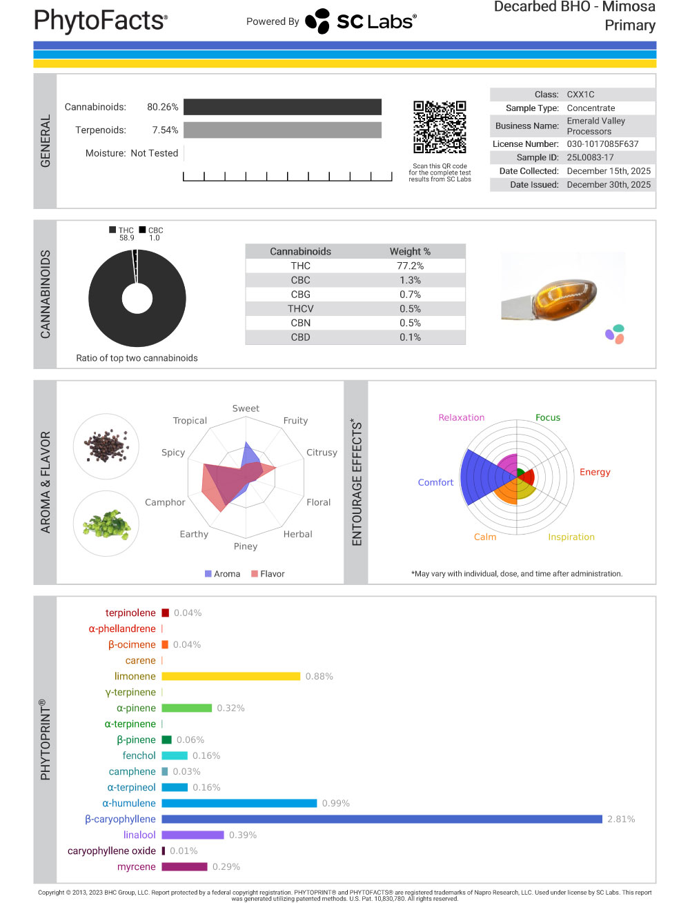 Mimosa Cart Cannabinoid and Terpene Test Results