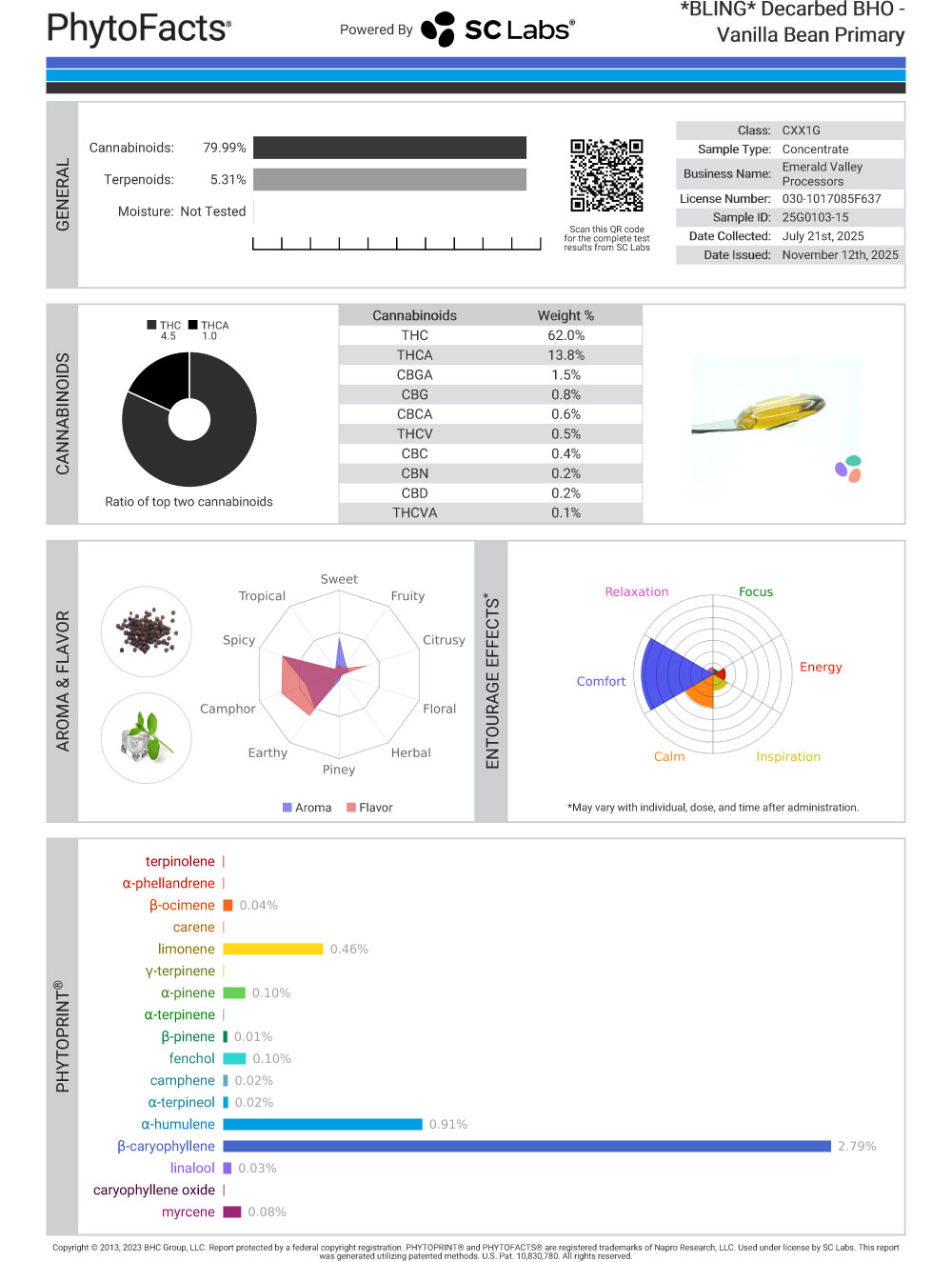 The Feels: The roughly 80% total active cannabinoids combined with a terpene profile dominated by caryophyllene gives a steady, controlled effect. The initial lift from limonene is present but mild, quickly settling into a calm, comfortable body feel.