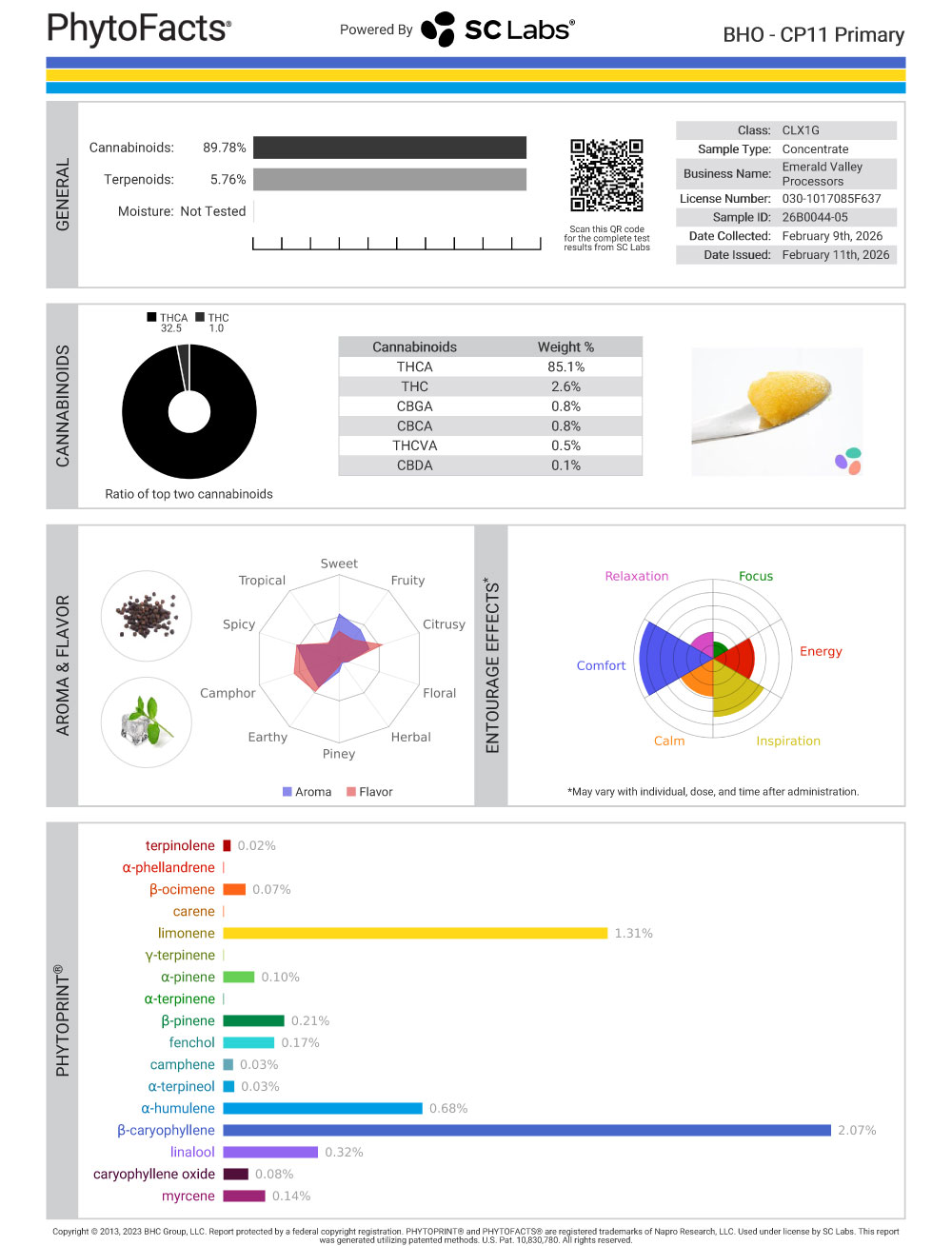 CP11 Cannabinoid and Terpene Test Results